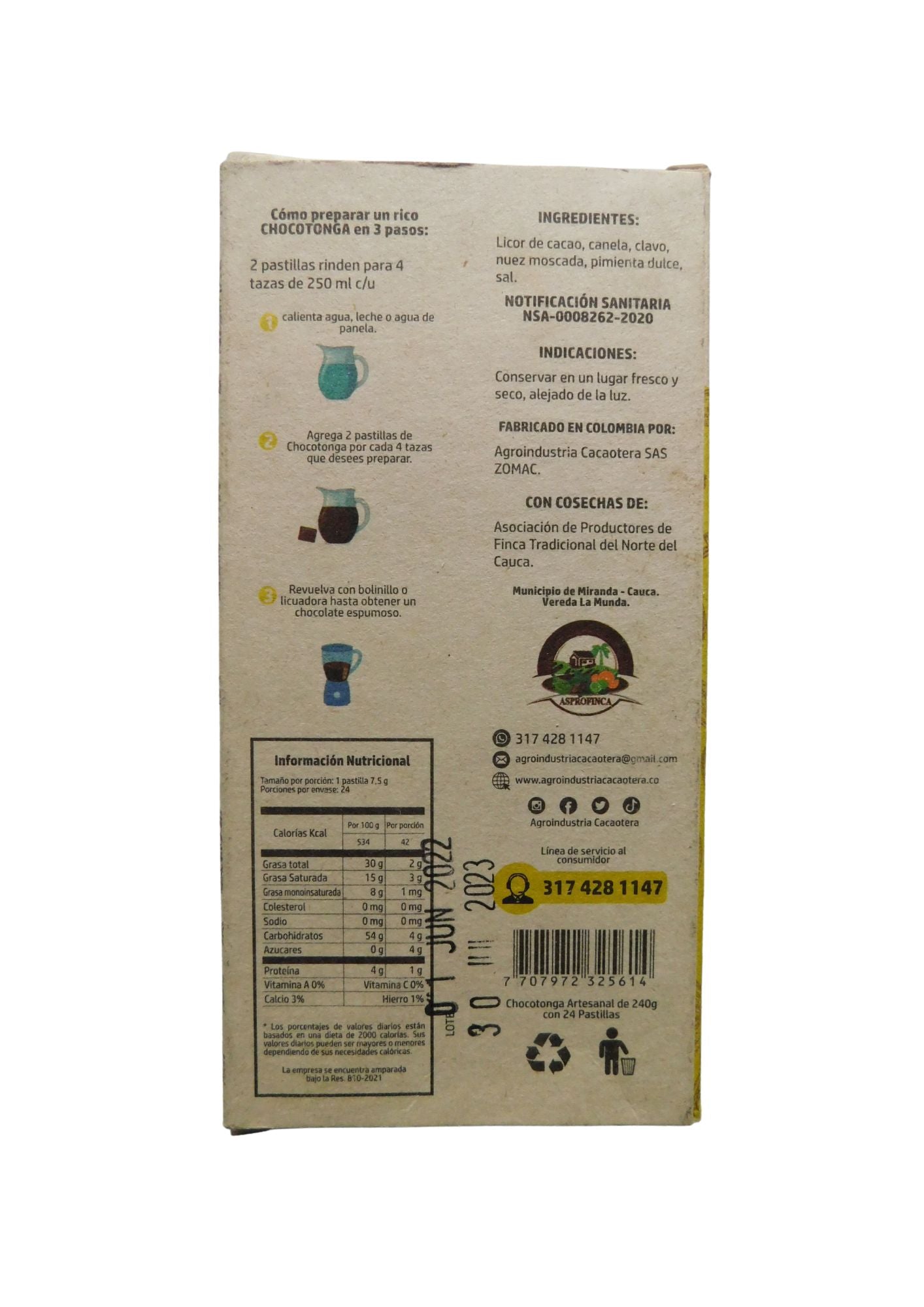 Chocotonga's Natural and Artisan Sugar-Free Chocolate is the perfect choice for those looking for a quality artisanal drinking chocolate without sugar. This product is sourced with care from northern Cauca cocoa farms and produced according to Good Agricultural Practices and Good Food Handling Practices, giving the customer a delicious tasting and ethically sourced chocolate.
