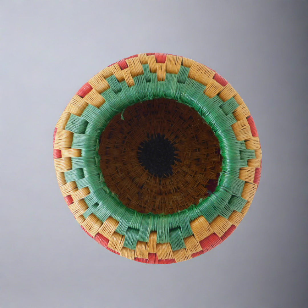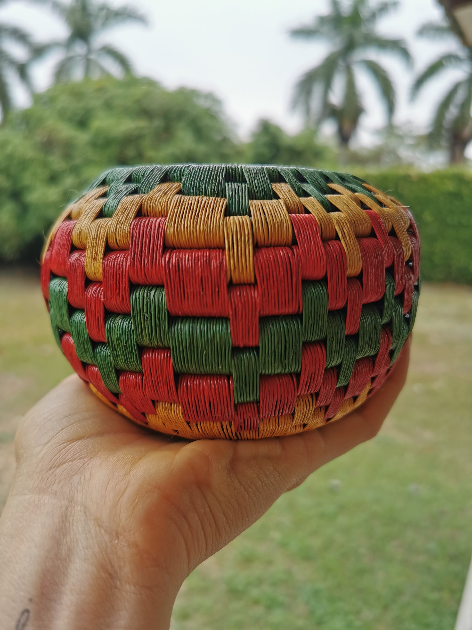 This vase is a unique piece, handcrafted by the Wounaan ethnic group, with an approximate crafting time of one and a half months.