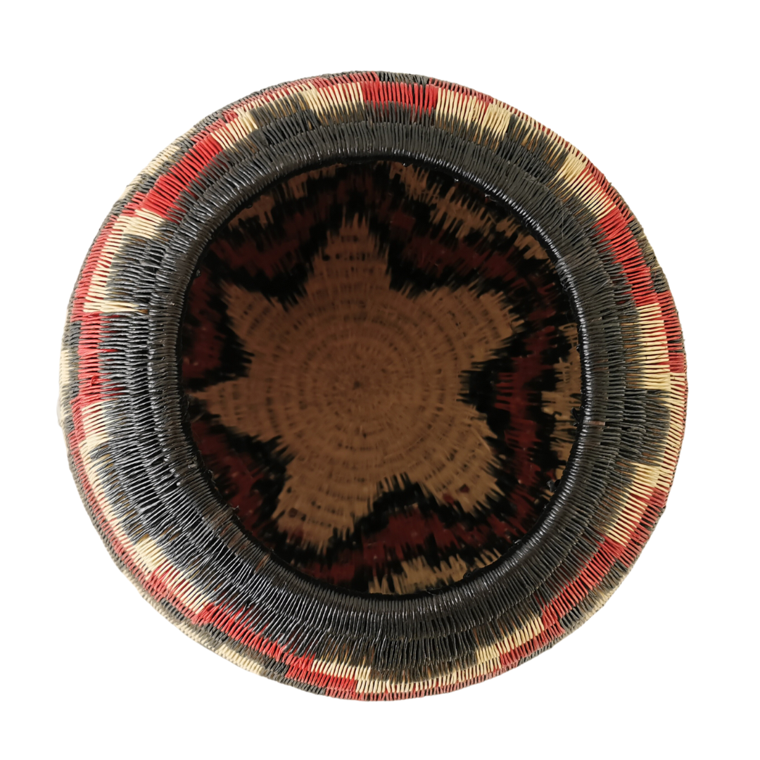 This vase is a unique piece, handcrafted by the Wounaan ethnic group, with an approximate crafting time of one and a half months.
