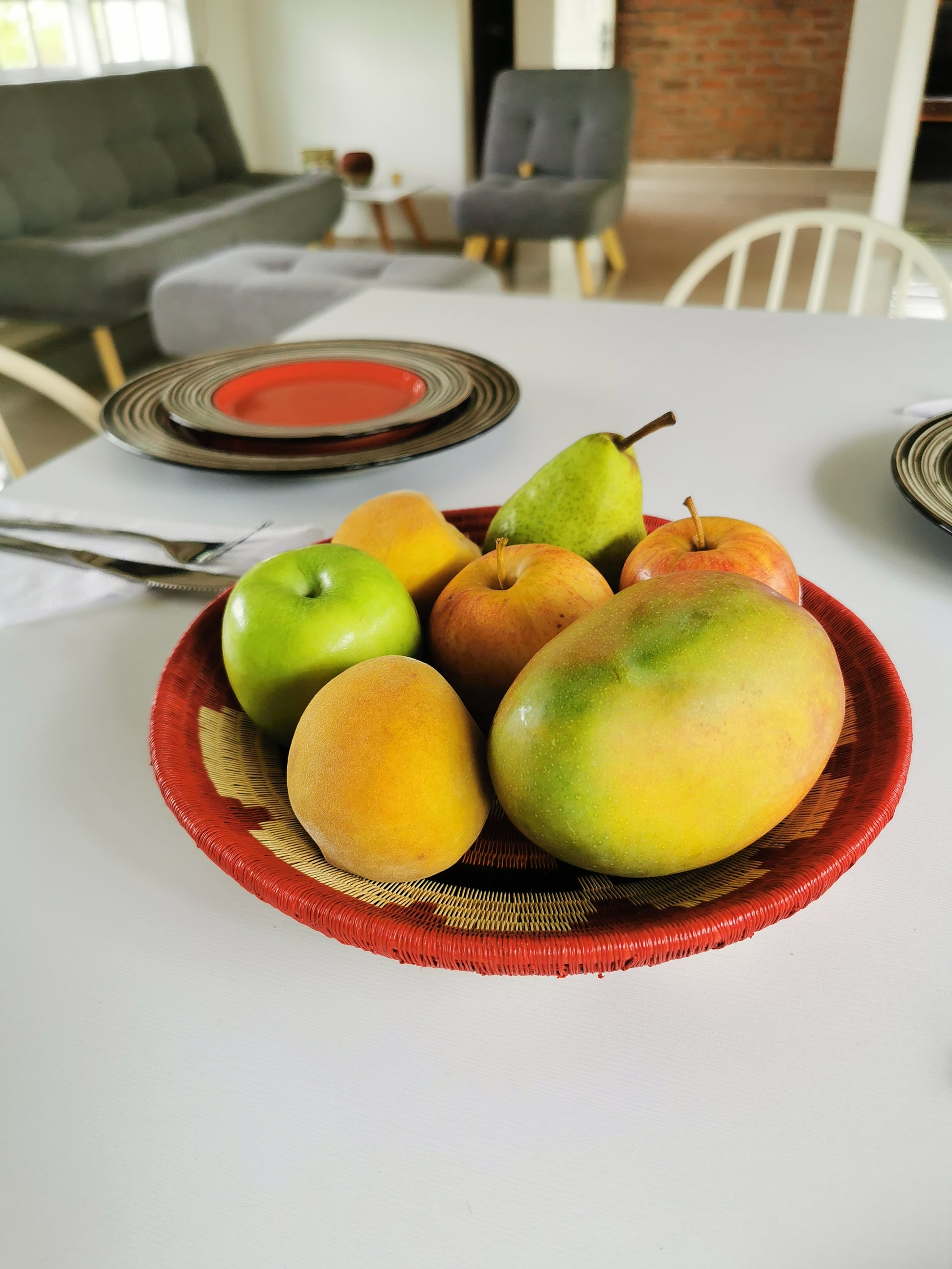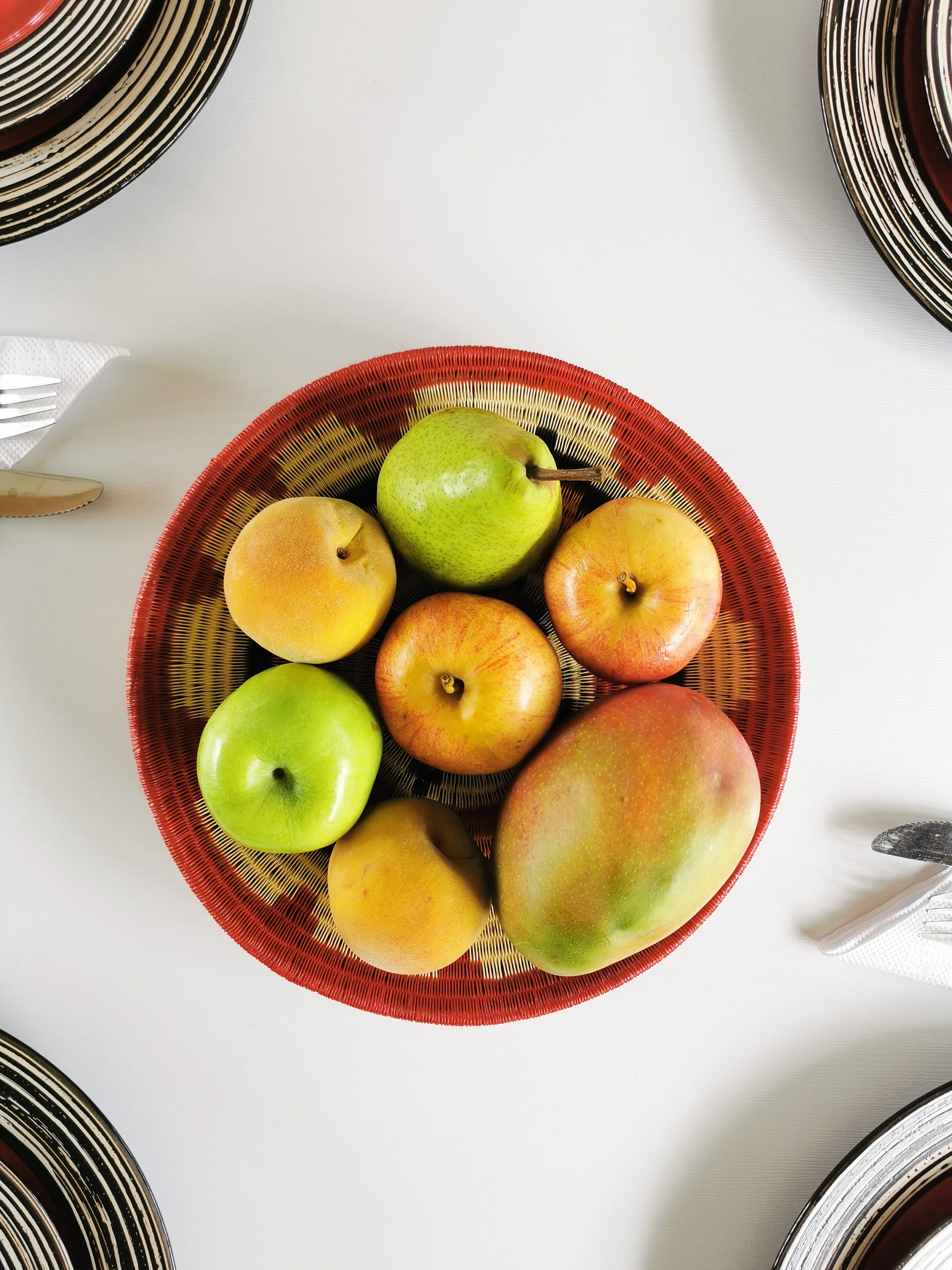 - Colors: Red, black, orange and beige.